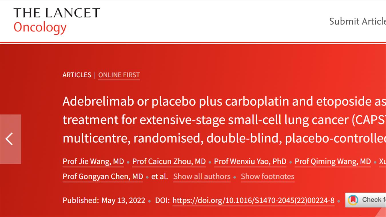 981博天娱乐卡瑞利珠单抗联合阿帕替尼最新研究成果荣登《柳叶刀·肿瘤》